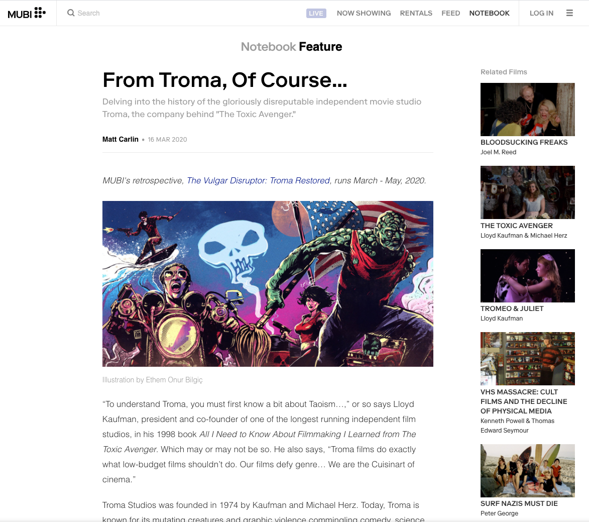 Troma Movies illustration for MUBI